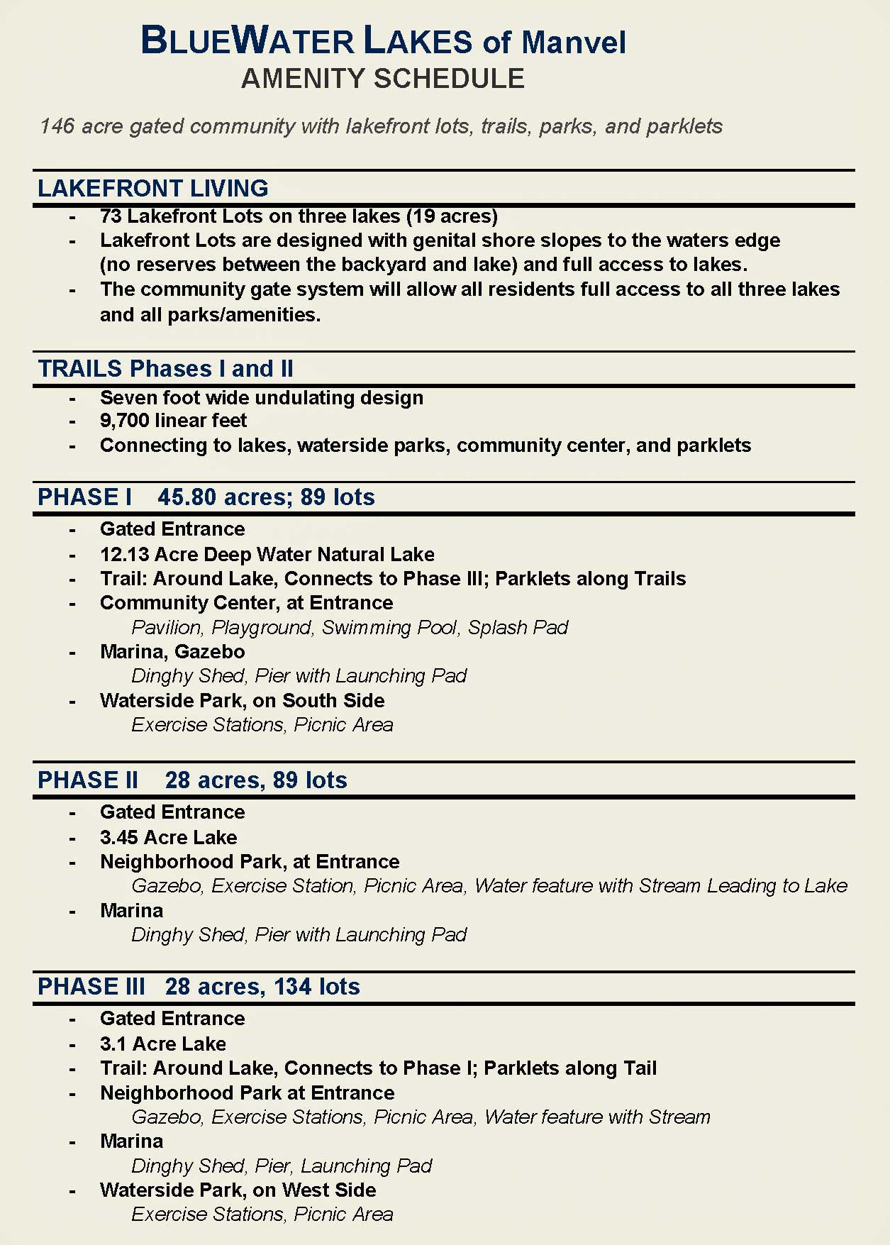 • BlueWater Amenity Schedule